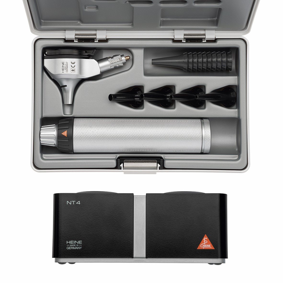 What’s included: BETA 400 F.O. Otoscope LED, 1 set (4 pcs.) of reusable tips, 10 AllSpec disposable tips 4 mm, hard case, BETA4 NT rechargeable handle with NT4 table charger.