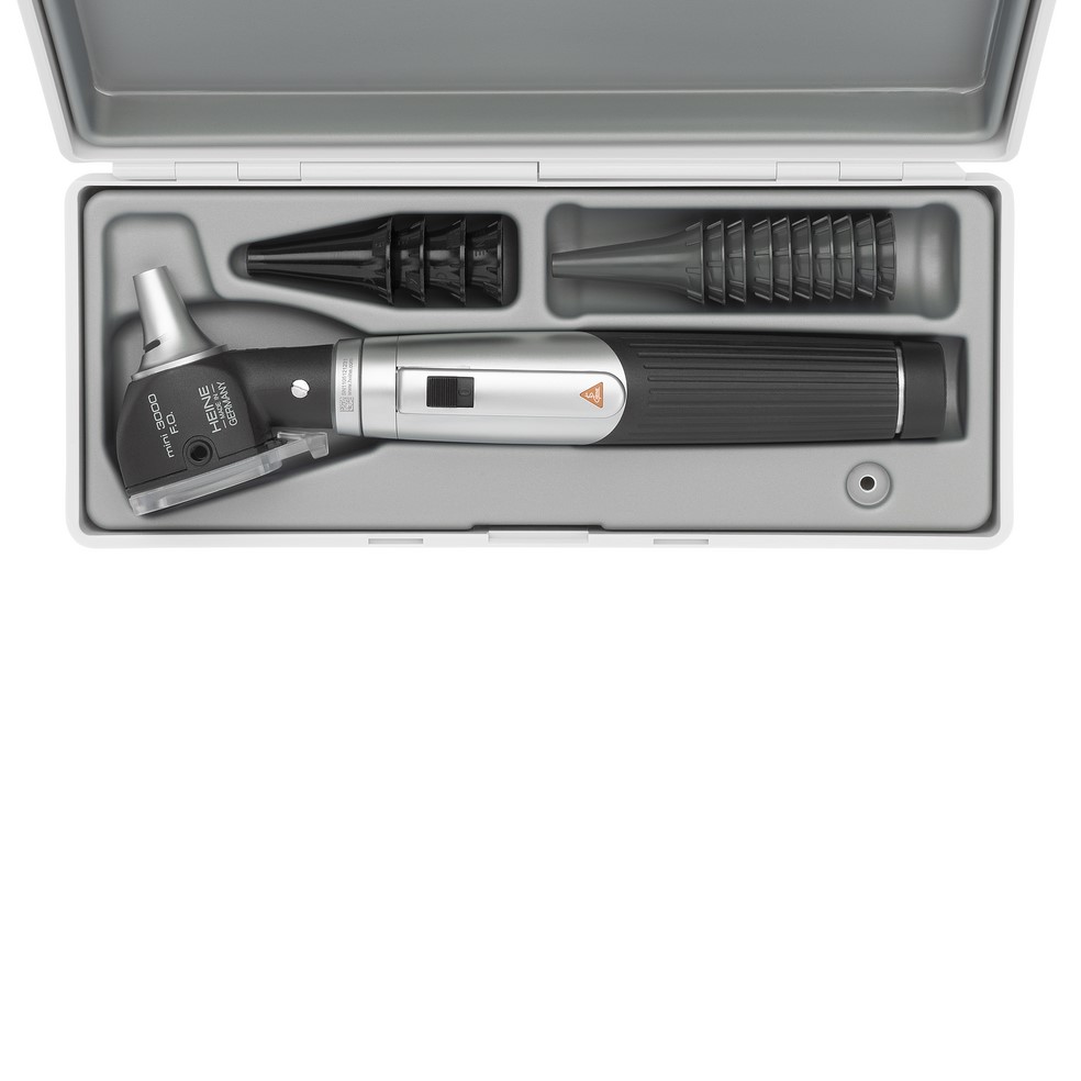 What’s included: mini 3000 F.O. Otoscope, 1 set (4 pcs.) reusable tips, 10 AllSpec disposable tips 4 mm, hard case.